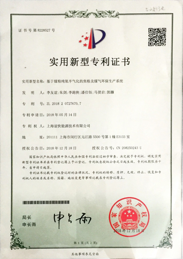 • 發明專利——煤粉純氧半氣化